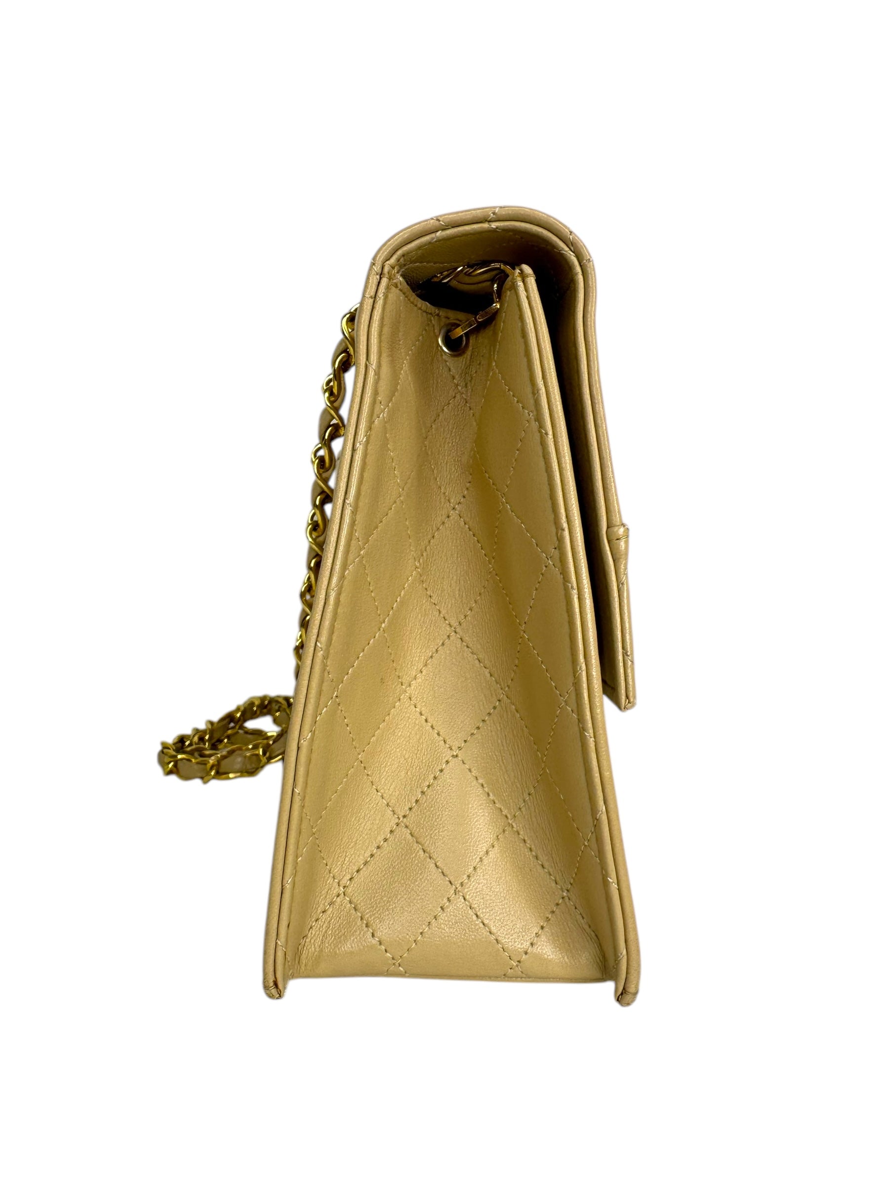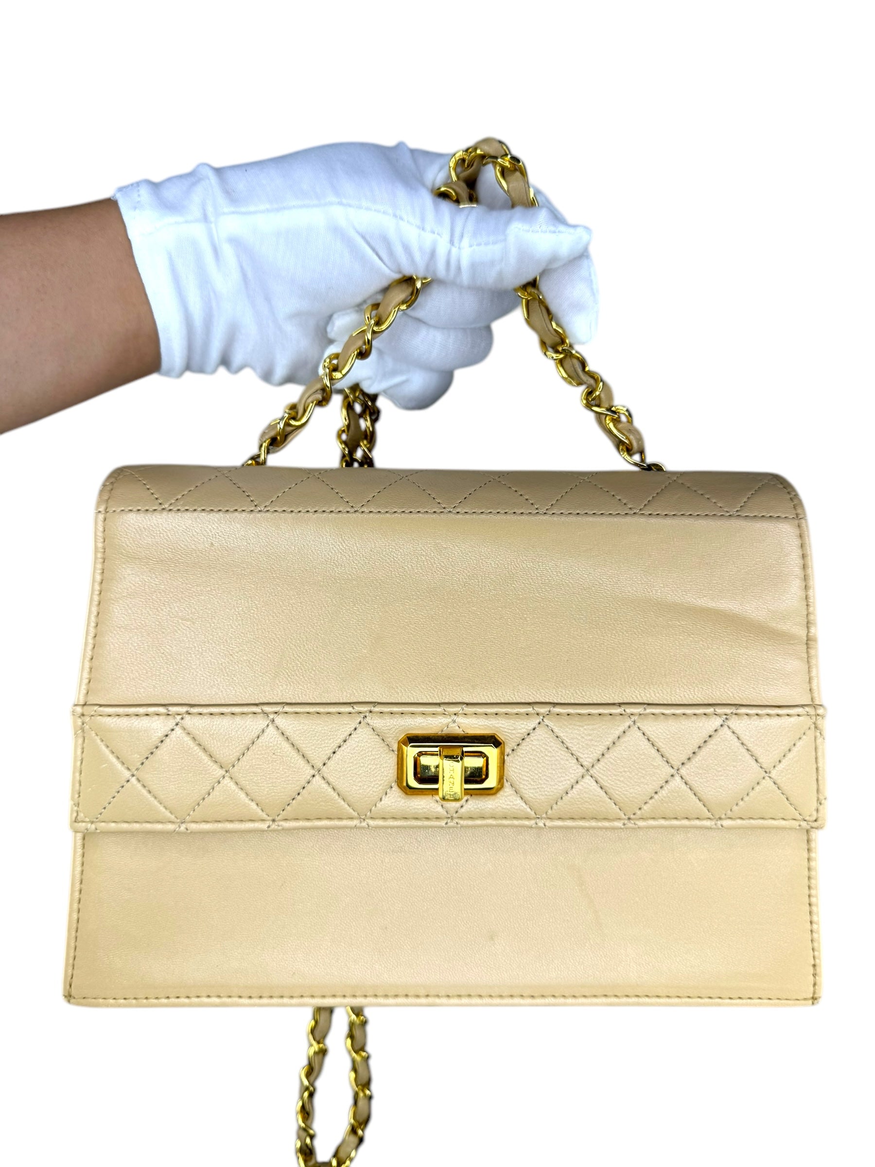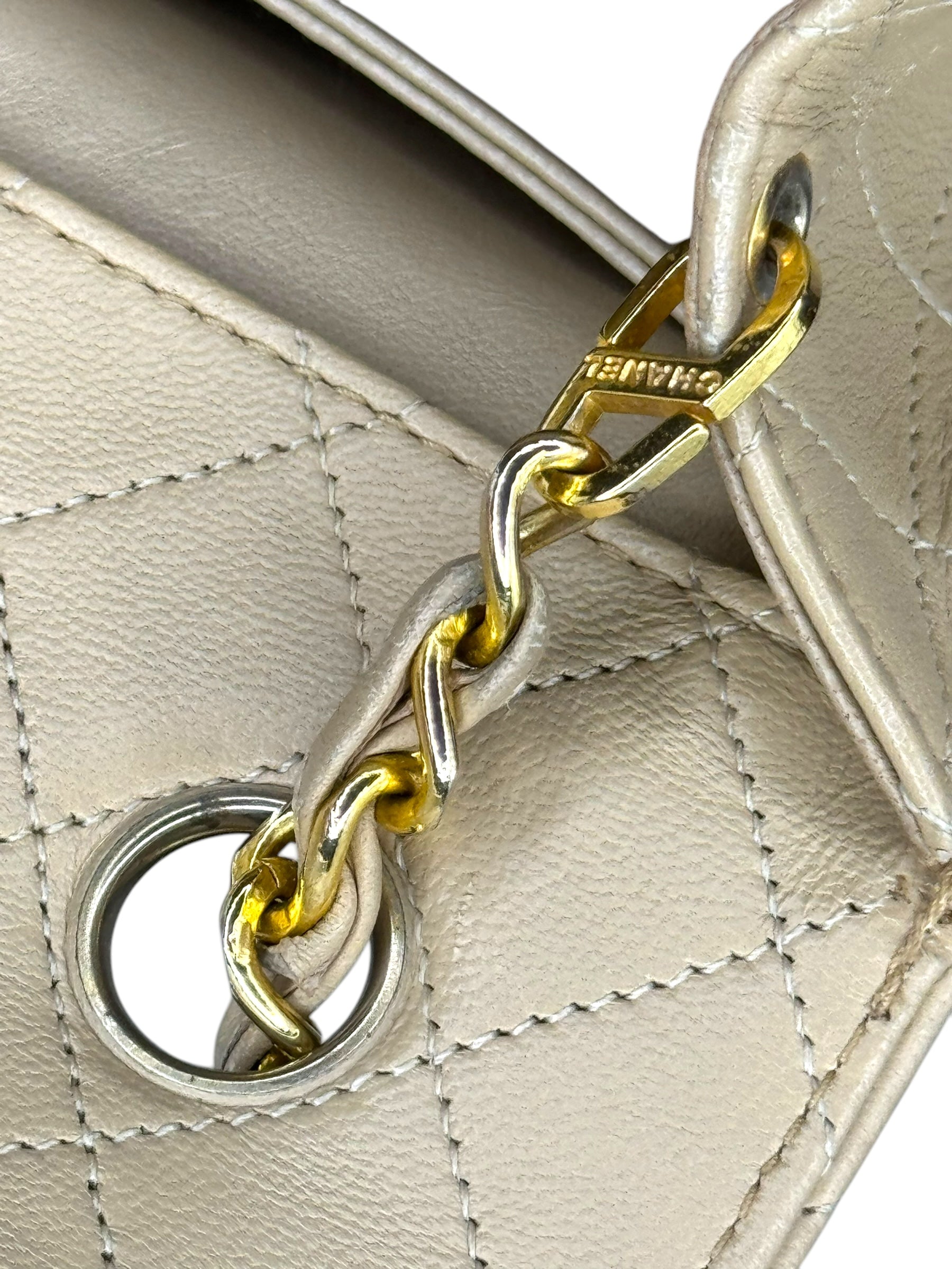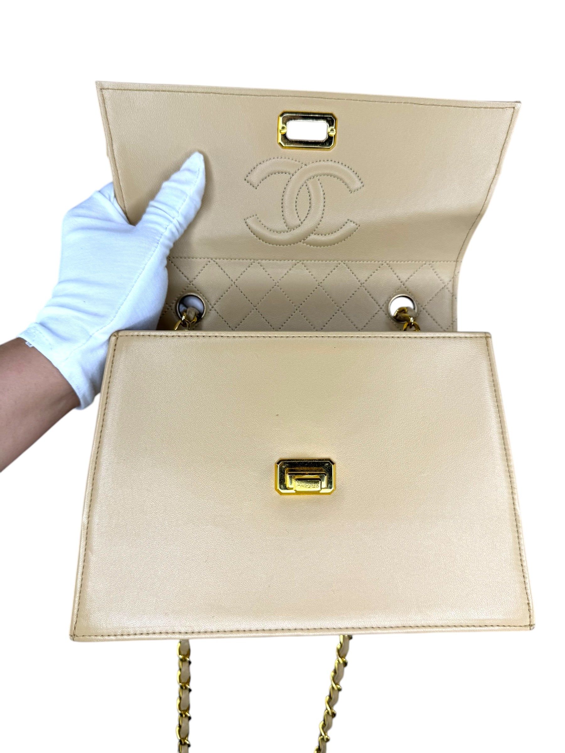 Chanel Trapezoid Beige Leather Shoulder Bag
