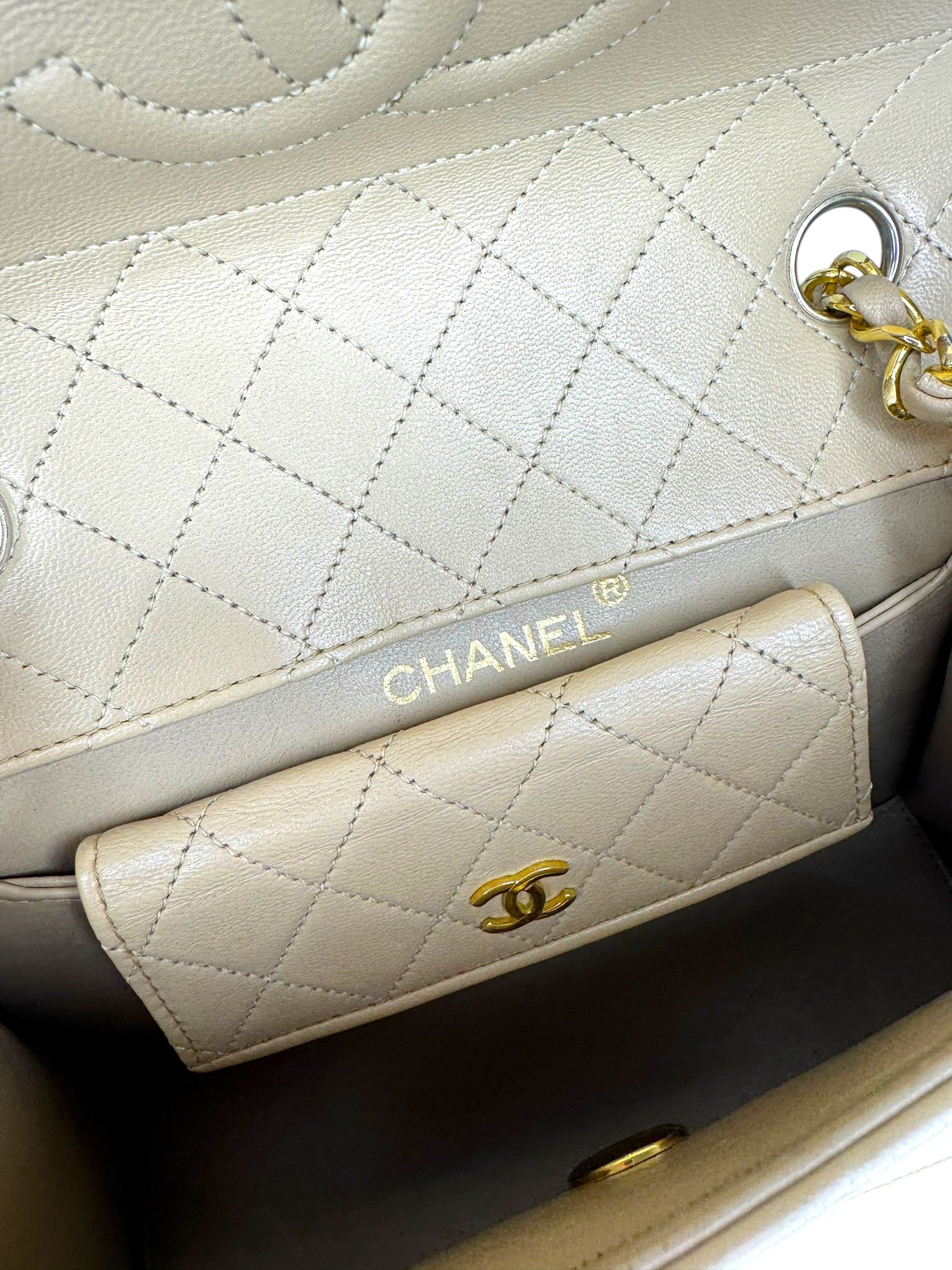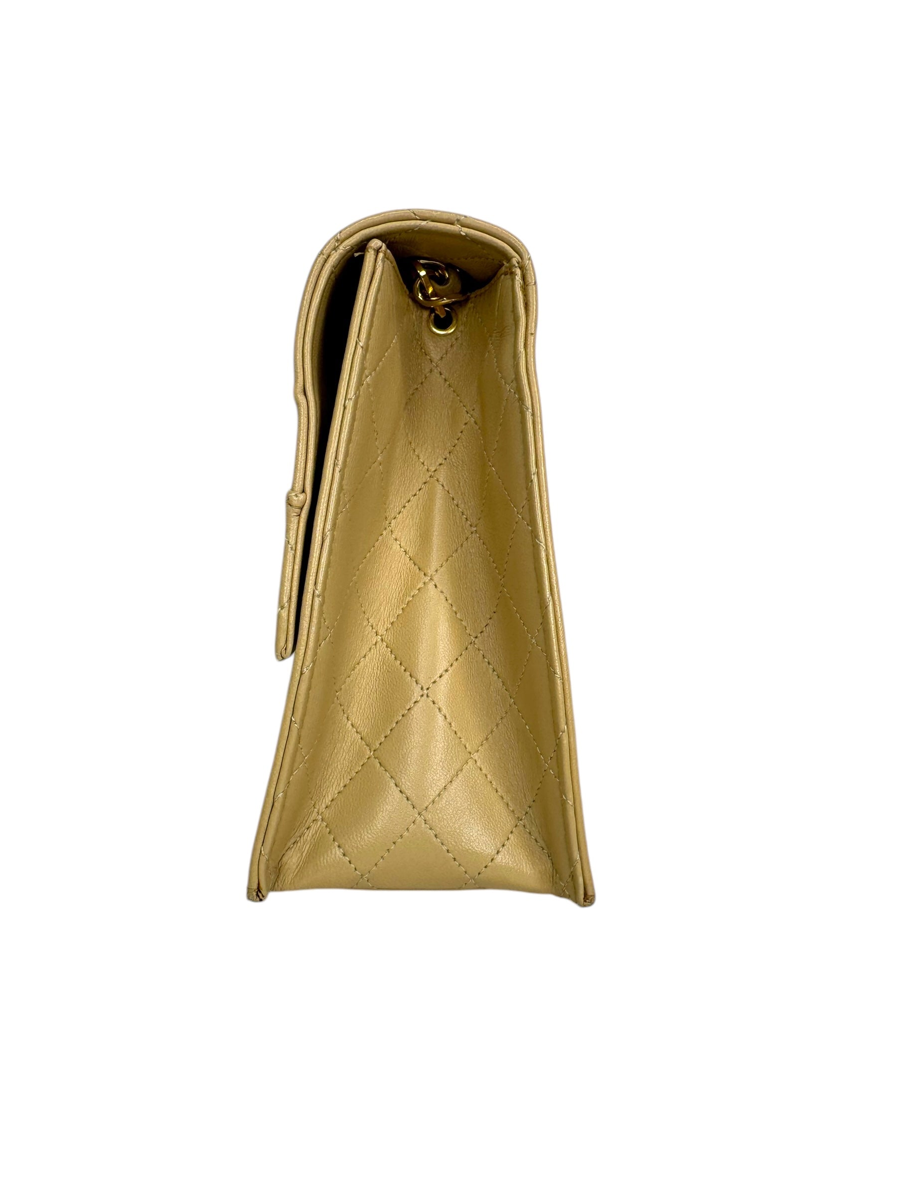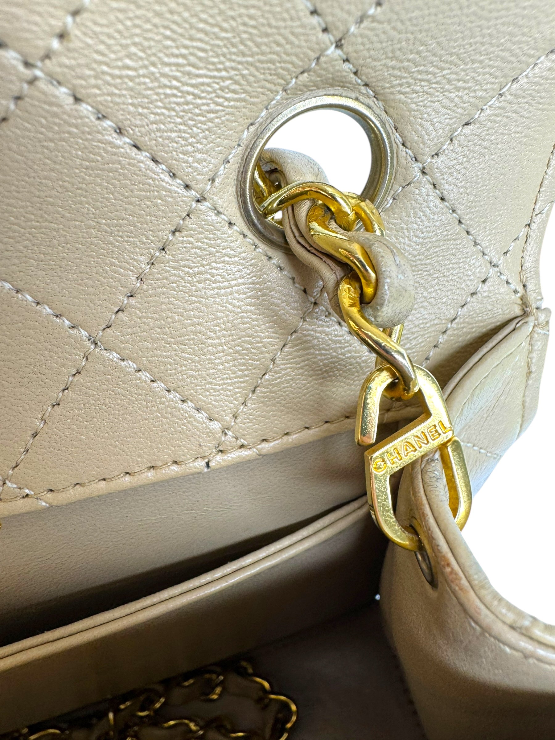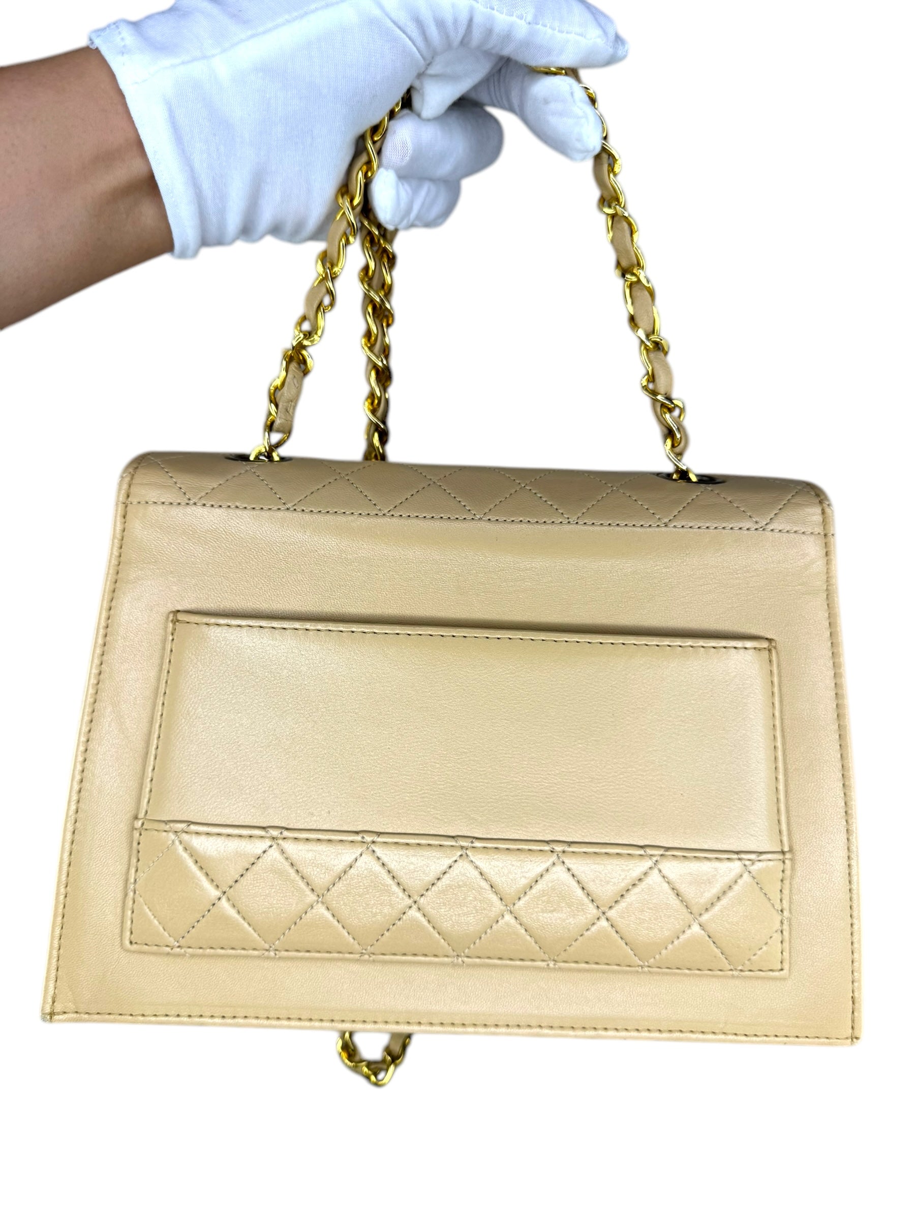 Chanel Trapezoid Beige Leather Shoulder Bag
